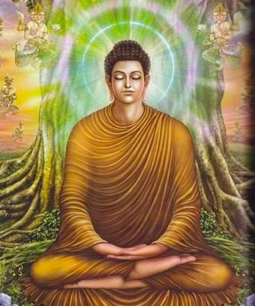 Meditation under the Bodhi tree; the Buddha sat in intense meditation under the Bodhi tree. He vowed not to move until he had achieved enlightenment – whether it rained or was cold. As he sat a giant snake came and protected him from the elements.