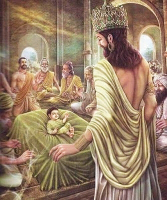 Holy prophecy; the Buddha’s father invited a great and old holy man to read his fortune. He wept as he said that Gautama would become a great enlightened being – but as he was already – he would not live to hear his teaching.
